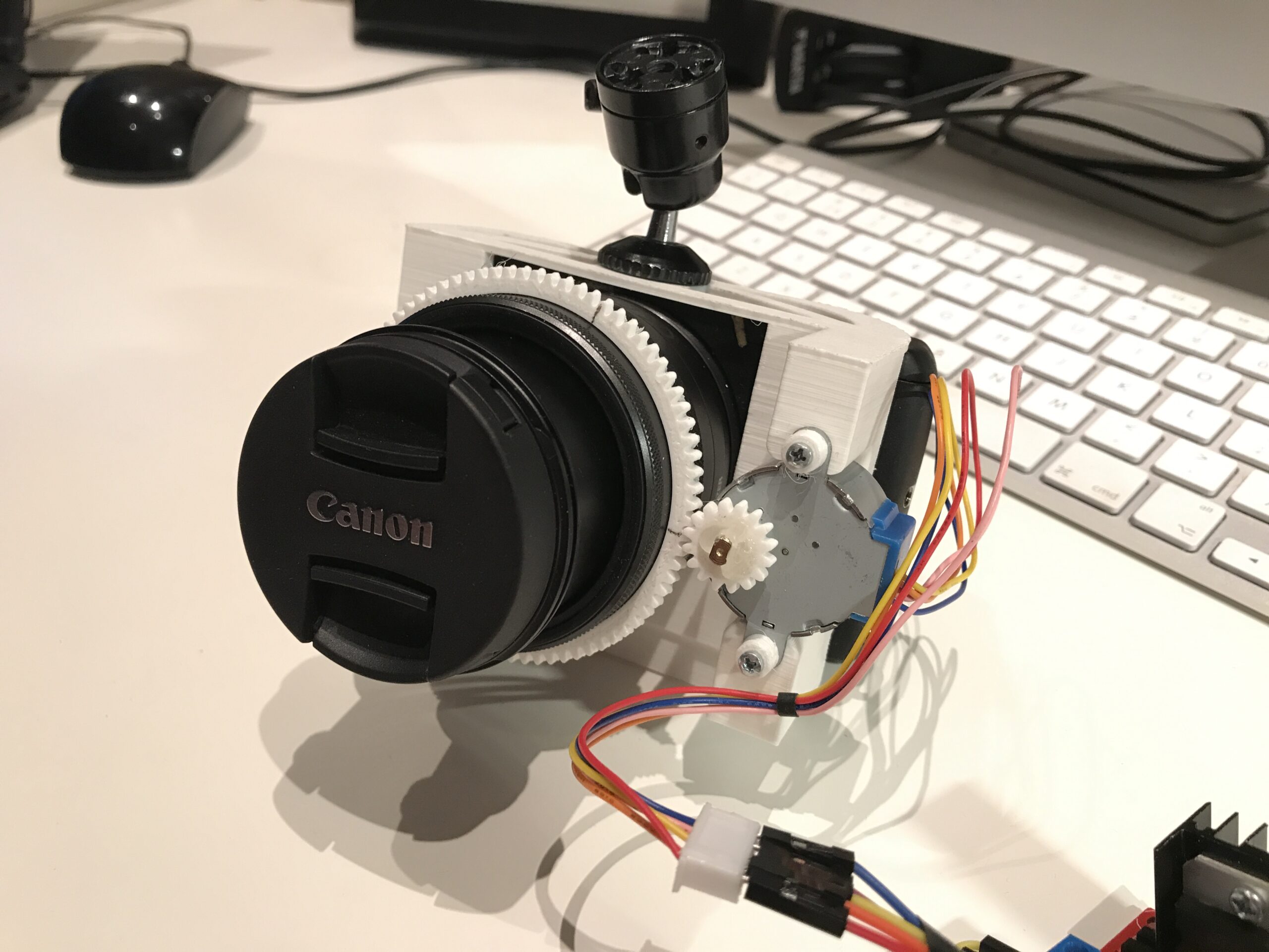Image: building the prototype. 3D printed housing and simple electronics around an existing camera body.